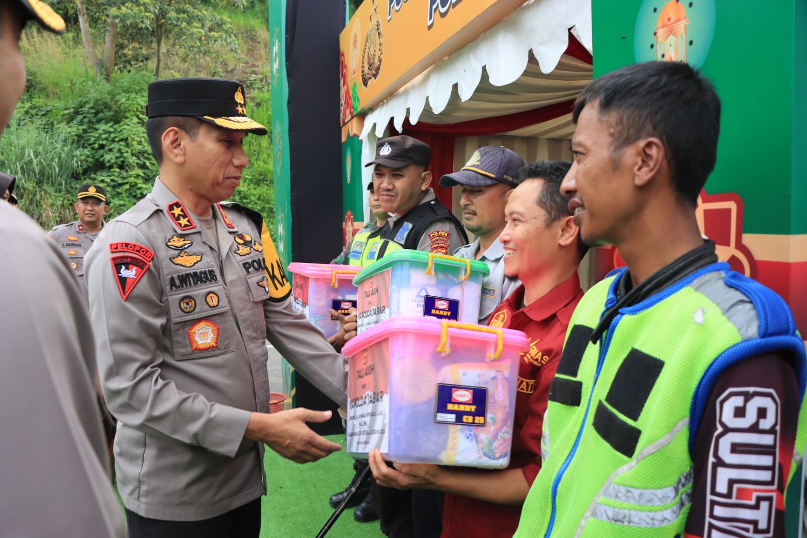 Dalam Kunjungan teraebut Kapolda Jawa Barat didampingi Kapolres Tasikmalaya Kota dan PJU Polres Tasikmalaya Kota, Membagikan Tali Asih sebagai bentuk kepedulian membagikan bingkisan bingkisan kepada anggota siaga Pospam Letter U Gentong, TNI- POLRI, BPBD,Dinkes,PUPR,Tim Ganjel dan Masyarakat Setempat yang membantu tugas Polri.