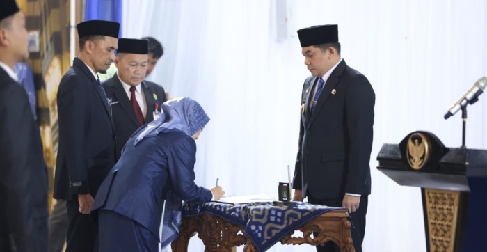 TANAH BUMBU, – Ketua Tim Penggerak PKK Kabupaten Tanah Bumbu (TP PKK Tanbu), Andi Irmayani Rudi Latif, menghadiri pelantikan Yulian Herawati sebagai Sekretaris Daerah (Sekda) Kabupaten Tanah Bumbu yang berlangsung di Pendopo Kantor Bupati, pada Jumat, 22 Agustus 2025.