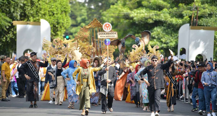 Hal itu terlihat dari partisipasi peserta helaran yang berasal dari 27 kota/kabupaten se-Jawa Barat. Mereka menampilkan kerajinan khas daerahnya.