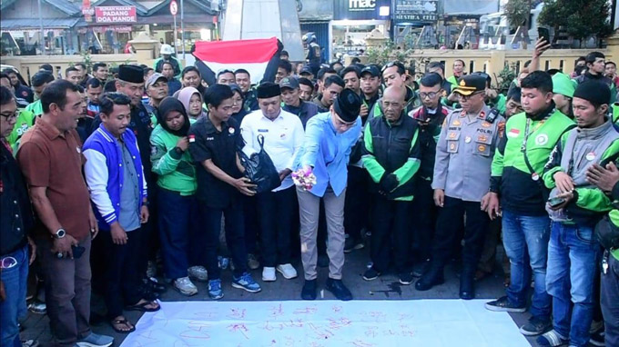 Wabup Fajar memberikan apresiasi kepada para pengemudi ojol, mahasiswa, serta aparat TNI-Polri yang turut mengawal aksi damai.