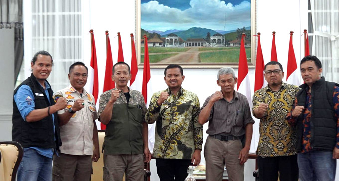 Bupati Sumedang, Dony Ahmad Munir menerima jajaran pengurus Himpunan Peternak Penggemar Ayam Pelung Indonesia (HIPAPI), Kamis (18/12/2025), di Gedung Negara.