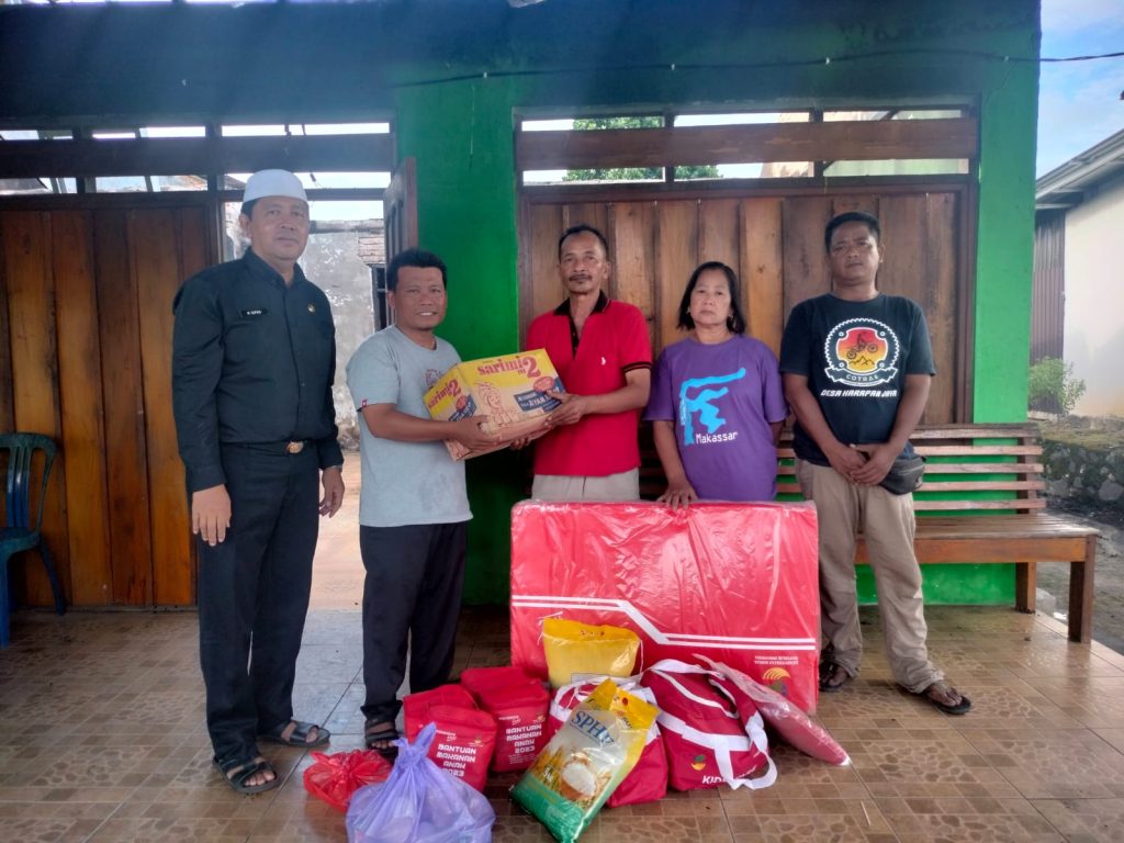 Bansos korban terdampak kebakaran tersebut di serahkan Kepala Dinas Sosial Tanbu Liana Hamita melalui Kabid Linjamsos di dampingi Kepala Desa Sari Mulya.