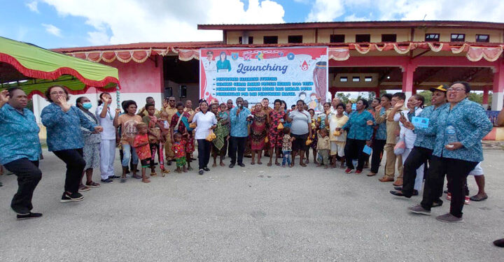 MAYBRAT — Pemda dan PKK Maybrat launching Penyuluhan Kesehatan Stunting, Gerakan Gemar Makan Protein Hewani, Pemberian Obat Tambah Darah, Pemeriksaan PTM dan Pengobatan Massal.