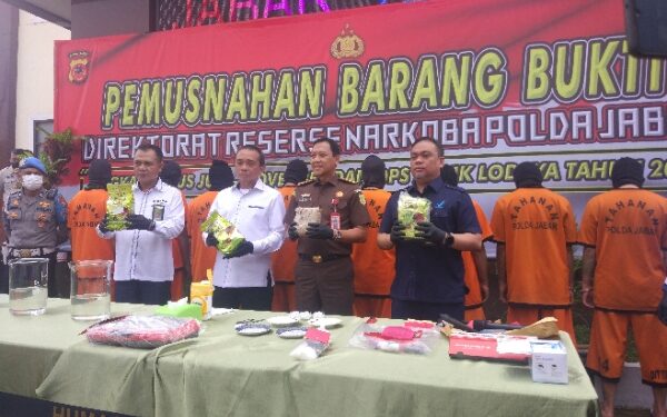 Kabid Humas Polda Jabar Kombes Pol Ibrahim Tompo, S.I.K., M.Si menjelaskan, barang bukti yang di musnahkan berupa Narkotika jenis Sabu sebanyak 4.883,14 gram, Sediaan Farmasi Jenis Jamu 2.577 pcs, Bahan Cream 41 tong, Sediaan Farmasi Jenis Kosmetik 148.500 pcs, Narkotika Jenis Ganja 2.372,09 gram, Obat Keras Tertentu (OKT) 39.092 butir, Tembakau Sintetis 35,8 gram.