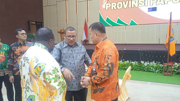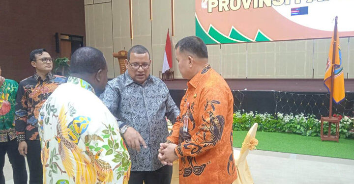 MAYBRAT,– Pj. Bupati Maybrat, Dr. Bernhard E. Rondonuwu, S.Sos. M.Si didampingi Plh Sekda Kabupaten Maybrat menghadiri launching lambang Provinsi Papua Barat Daya di Kota Sorong, Kamis, 27 April 2023.