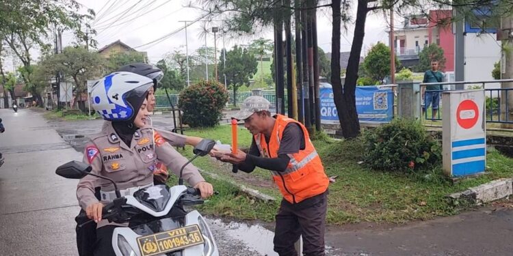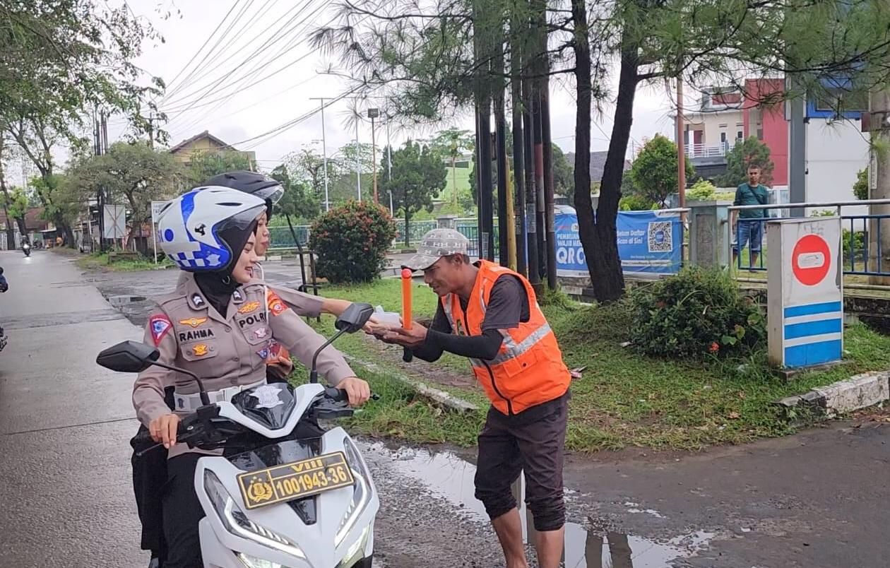Subang, Di bawah rintik air hujan, sejumlah Polwan Cantik membagikan ratusan takjil kepada masyarakat Subang yang membutuhkan, diantaranya, pengayuh becak, pemulung, petugas parkir sopir angkot dan juga tunawisma yang ada wilayah Subang Kota.