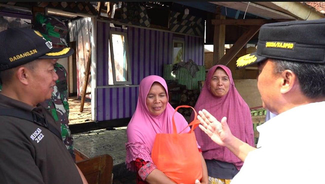 Pj. Bupati Sumedang saat meninjau korban rumah terbakar akibat sambaran petir di Dusun Cirengganis Desa Haurngombong Kecamatan Pamulihan, Rabu (6/12/2023).