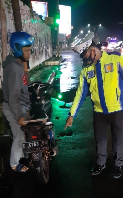 Kepada para pelanggar dilakukan peneguran dan himbauan untuk melengkapi kelengkapan kendaraan, mengganti knalpot standar dan untuk selalu berhati-hati dijalan dalam berlalu lintas.
