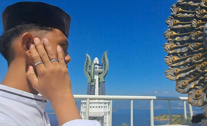 Suara adzan dari tiap penjuru, mulai dari Masjid Al-Kamil Jatigede, jembatan penghubung menuju menara Kujang Sapasang, setiap lantai menara, sampai dengan puncak menara bergemuruh nan merdu.