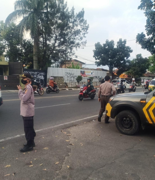 BANDUNG, — Polrestabes Bandung, Personil Polsek Antapani Polrestabes Bandung Unit Lalulintas , QR Samapta Dipimpin Panit Lantas Iptu Agus Riyanto melaksanakan pengaturan lalu lintas Sore di Jalur Utama, Minggu (31/7/2022).