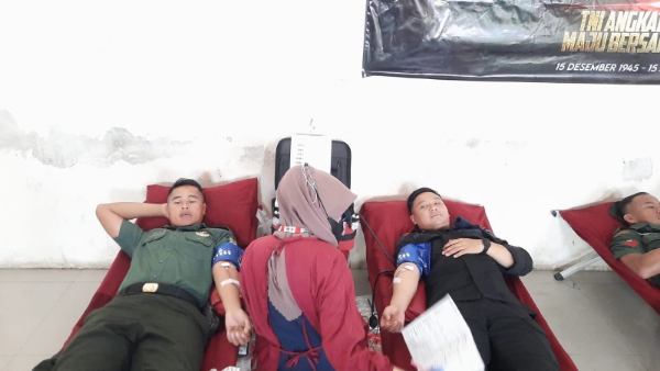 Anggota Kompi 1 Batalyon D Pelopor yang dipimpin Paops Kompi 1 Batalyon D Pelopor Ipda Sajimin mengikuti kegiatan Bhakti Sosial Donor Darah yang di adakan di dua tempat yaitu Makorem 062 / Tarumanagara dan Makodim 0611 Garut bekerjasama dengan PMI (Palang Merah Indonesia) dalam rangka Hari Juang TNI AD.