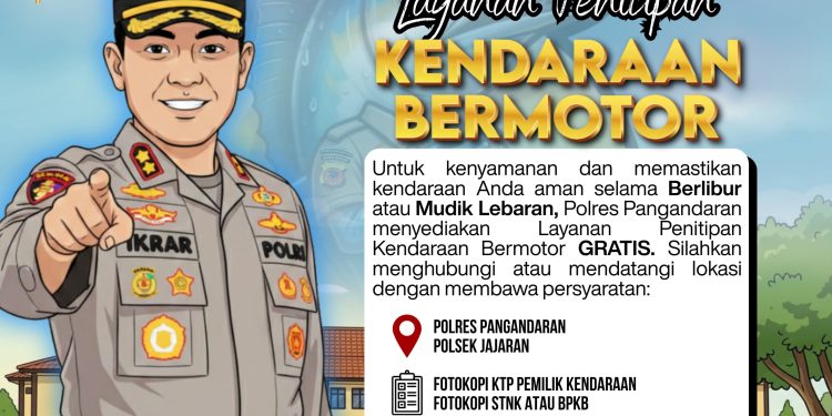 PANGANDARAN – Menjelang arus mudik Hari Raya Idulfitri, Polres Pangandaran meluncurkan program pelayanan masyarakat guna memberikan rasa aman bagi warga yang akan pulang ke kampung halaman. Polres Pangandaran resmi menyediakan layanan penitipan kendaraan bermotor secara gratis bagi seluruh lapisan masyarakat.
