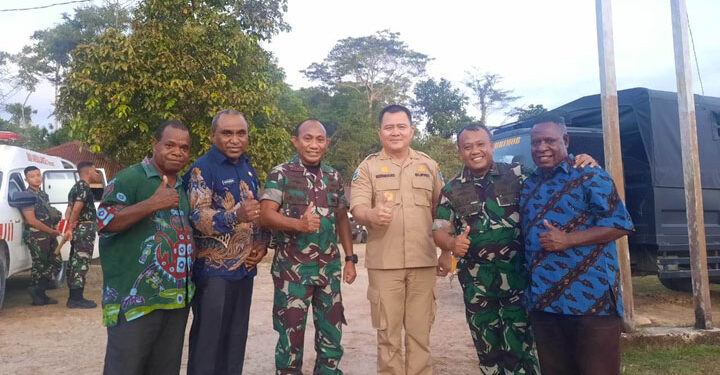 MAYBRAT,– Pangdam XVIII/Kasuari bersama Pj. Bupati Maybrat, Bernhard E. Rondonuwu membahas dukungan keamanan untuk penyelenggaraan pemerintahan, pembangunan dan kemasyarakatan di Kabupaten Maybrat, khusunya di Aifat Timur Raya.