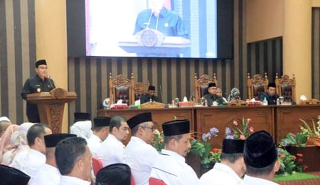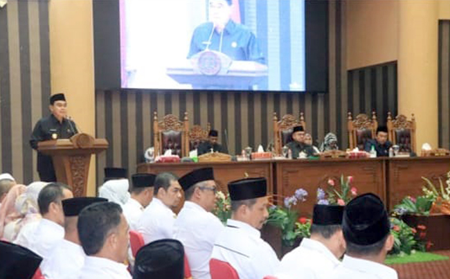 Hadir dalam dua rapat paripurna itu perwakilan Forkopimda, anggota DPRD, Sekretaris Daerah dan jajaran kepala SKPD, instansi dan lembaga vertikal, Perusda dan perbankan, juga tamu undangan lainnya. (Ag)