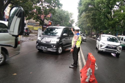 BANDUNG, — Polrestabes Bandung, Personil Unit Lantas dan Unit Samapta Polsek engkong Polrestabes Bandung melaksanakan pelayanan masyarakat dan pengaturan arus lalu lintas sore pasca diguyur Hujan, Jumat (9/9/2022).