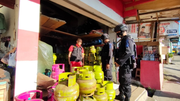 Cianjur – Anggota Kompi 4 Batalyon B Pelopor Satbrimob Polda Jabar dipimpin Briptu Andri Saputra bersama 2 personel lainnya melaksanakan patroli ketahanan pangan dan mengecek ketersediaan gas elpiji di agen elpiji secara langsung di wilayah Cipanas Kabupaten Cianjur Sebagai Wujud Bakti Brimob Untuk Masyarakat.