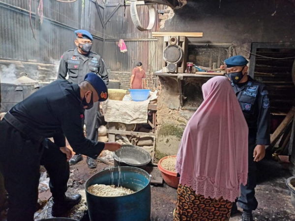 Pastikan Produknya Steril, Personel Brimob Jabar Sambangi Perusahaan TahuTempe