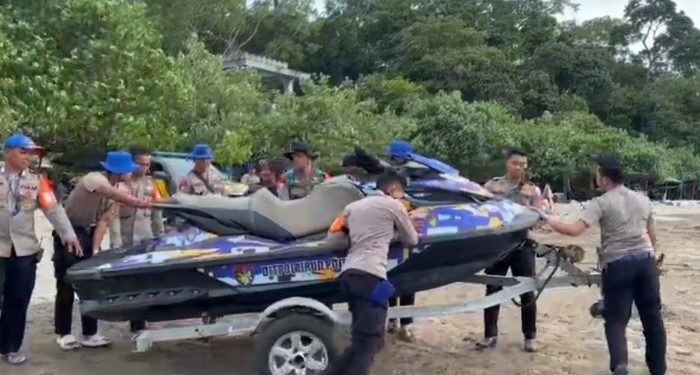 PANGANDARAN, — Personil Satpolairud Polres Pangandaran di bawah jajaran Direktorat Polairud Polda Jabar melakukan patroli rutin menggunakan Jet Skie untuk memantau aktivitas wisatawan yang berativitas di air, dan mamastikan aman dan lancar, Sabtu (27/12/2025).