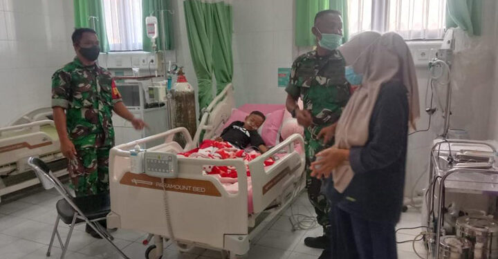 SUMEDANG,– Babinsa Koramil 1004 Tanjungsari, Kodim 0610 Sumedang, Korem 062 Tarumanagara, Serda Ridwan menunjukkan kepeduliannya untuk menjenguk warga binaannya, Muhamad Ikbal Ramdani (12), anak pasangan Engkos dan Yayah.