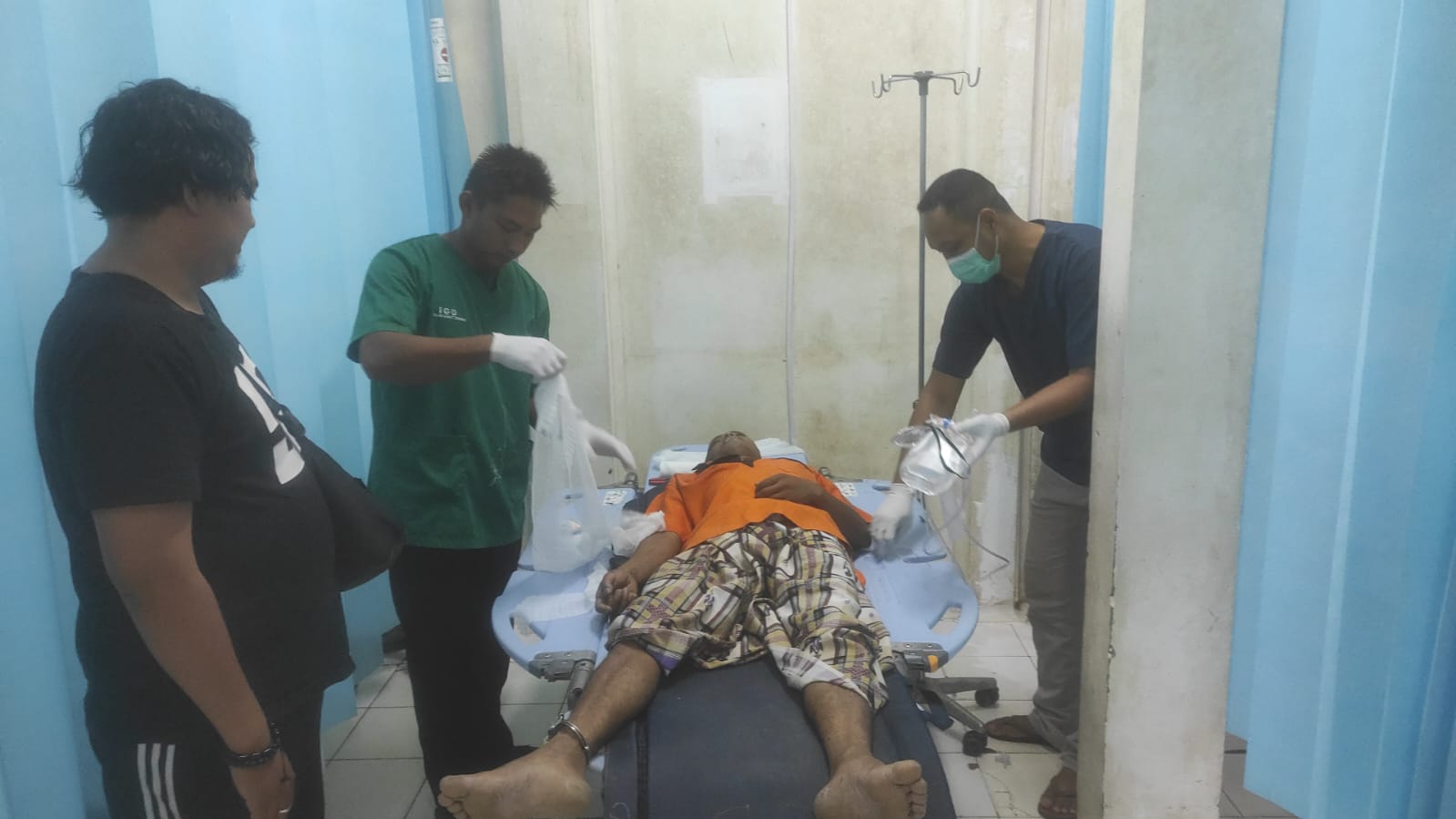 kemudian pada tanggal (30 /04) tahanan di Bantarkan ke RSUD Andi Abdurrahman, dengan diawali menjalani pemeriksakan ke RS MARINA Kemudian di rujuk kemabali ke RSUD ANDI ABDURRAHMAN, dengan di kawal dan di jaga personel Polsek Batulicin serta disaksikan Sekdes Desa Danau Indah selaku Pelapor.