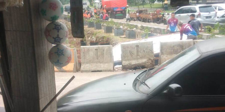 Sementara ketika ditemui wartawan di Lampu Merah Sukahati, Ali Masyhur sebagai Relawan Sahabat Jaro Ade sedang melihat rangka kayu bekas pemasangan baliho yang sudah berserakan.