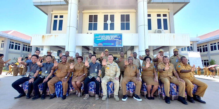 MAYBRAT,– Pj. Bupati Maybrat, Bernhard E. Rondonuwu melaksanakan apel pagi yang dilanjutkan dengan penyerahan piagam penghargaan Universal Healt Coverage (UHC) Non Cat Off dalam program JKN-KIS oleh BPJS kepada Pemerintah Kabupaten Maybrat, Selasa (7/3)