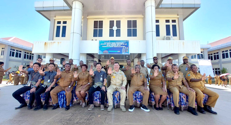 MAYBRAT,– Pj. Bupati Maybrat, Bernhard E. Rondonuwu melaksanakan apel pagi yang dilanjutkan dengan penyerahan piagam penghargaan Universal Healt Coverage (UHC) Non Cat Off dalam program JKN-KIS oleh BPJS kepada Pemerintah Kabupaten Maybrat, Selasa (7/3)