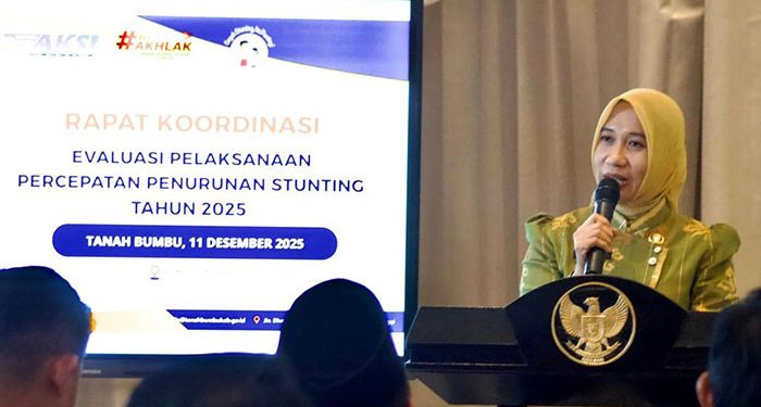 TANAH BUMBU, – Pemerintah Kabupaten Tanah Bumbu (Pemkab Tanbu) menggelar Rapat Koordinasi (Rakor) Evaluasi Pelaksanaan Percepatan Penurunan Stunting Tahun 2025, yang diikuti peserta dari berbagai lintas sector, bertempat di Hotel Lotusa Batulicin, pada Kamis, 11 Desember 2025.