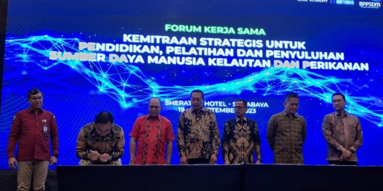 Adapun penandatanganan kerjasama tersebut, sambung Yulian, merupakan rangkaian Forum Kerja Sama Kemitraan Strategis. untuk Pendidikan, Pelatihan dan Penyuluhan Sumber Daya Manusia Kelautan dan Perikanan.