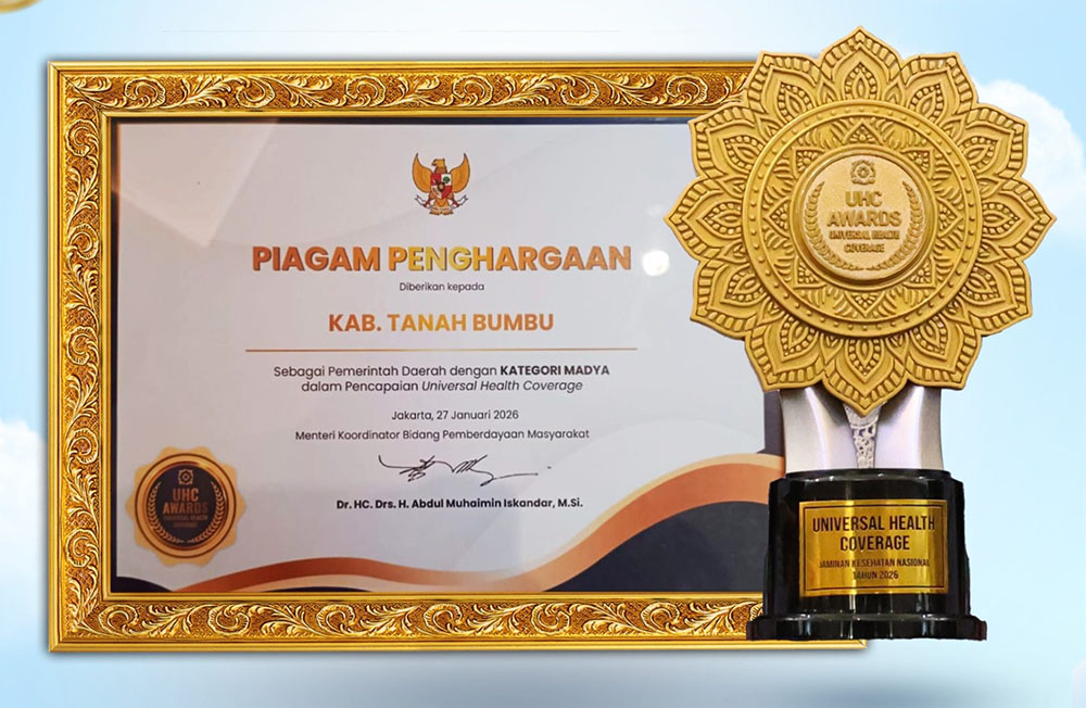 Kabupaten Tanah Bumbu dinilai berhasil memenuhi indikator Universal Health Coverage. Khususnya dalam hal cakupan kepesertaan dan tingkat keaktifan masyarakat dalam Program Jaminan Kesehatan Nasional (JKN) BPJS Kesehatan. Sehingga layak memperoleh penghargaan kategori Madya.