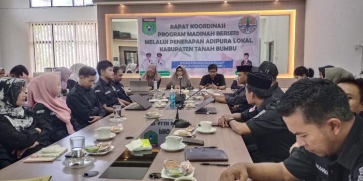 Menuju arah itu, Dinas Lingkungan Hidup (DLH) Kab Tanbu melakukan peningkatan pemahaman dan sistematika penanganan sampah melalui rapat koordinasi Program Madinah Berseri Melalui Penerapan Adipura Lokal. Dengan melibatkan pihak Kecamatan maupun Desa, Kamis (22/02/2024) di ruang rapat DLH.
