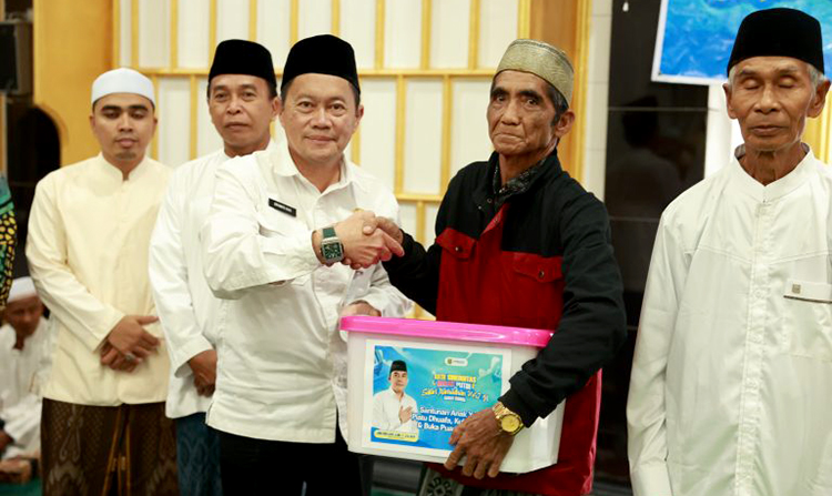 Selanjutnya untuk sholat Isya dan Tarawih dilaksanakan di Masjid Nurul Huda Kecamatan Sungai Loban sekaligus penyerahan bantuan sosial.