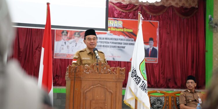 Bupati Tanbu Zairullah Azhar membuka langsung seminar yang di hadiri puluhan Ormas se-Tanah Bumbu, Selasa (12/9/2023) di Mahligai Bersujud.