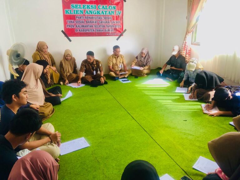 Tanah Bumbu — Pemerintah Kabupaten Tanah Bumbu (Pemkab Tanbu) bersama Pemerintah Provinsi Kalimantan Selatan (Pemprov Kalsel) melakukan seleksi calon klien angkatan IV Panti Rehabilitasi Sosial Tuna Sosial (PRSTS) Barakat Cangkal Bacari Provinsi Kalimantan Selatan (Kalsel) Tahun 2023.