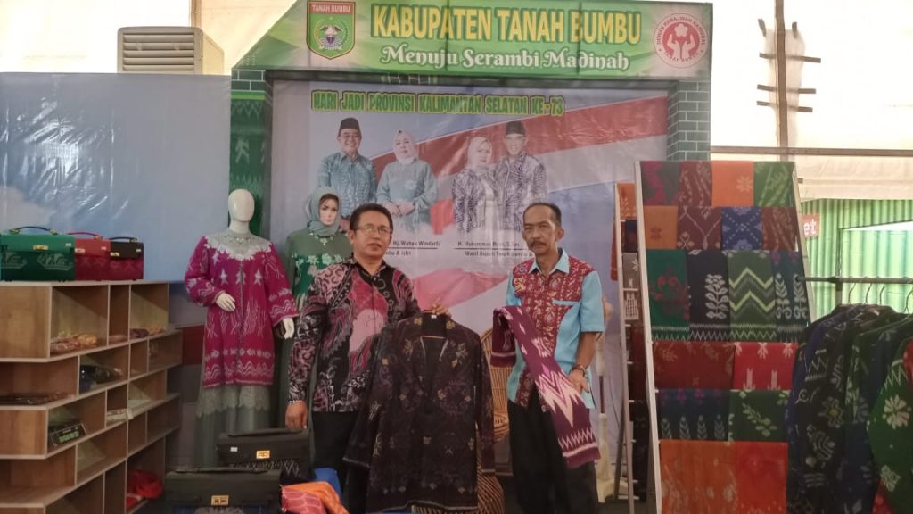 Tanah Bumbu — Kabupaten Tanah Bumbu (Tanbu) pasarkan produk UMKM berupa Kain Tenun dan Pentol Ikan pada gelaran Kalsel Expo 2023 di Banjarbaru.