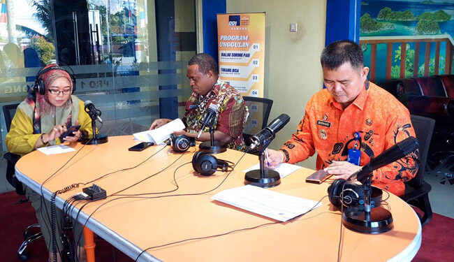 SORONG,– Penjabat Wali Kota Sorong, Dr. Bernhard E. Rondonuwu, S.Sos., M.Si mengadakan dialog interaktif di Pro 11 Radio Republik Indonesia (RRI) Sorong, Rabu (28/8).