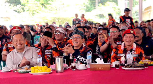 Antusiasme ribuan anggota Pemuda Pancasila Kabupaten Bandung yang kompak mengenakan seragam motif loreng oranye hitam khas PP patut dipuji. Sepanjang acara, mereka tak lelah meneriakkan yel-yel Pemuda Pancasila maupun yel-yel Bedas.