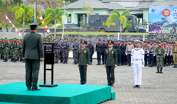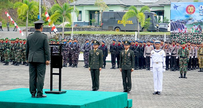TANAH BUMBU, – Upacara peringatan Hari Ulang Tahun (HUT) ke-80 Tentara Nasional Indonesia (TNI) berlangsung khidmat di Lapangan Makodim 1022/Tanah Bumbu, pada Minggu, 5 Oktober 2025.