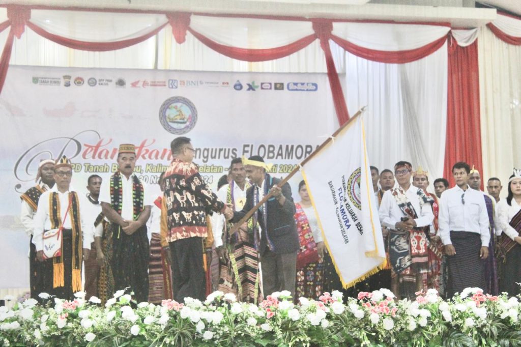 Tanah Bumbu — Pengukuhan Pengurus Flobamora (Flores, Sumba, Timor Alor) DPD (Dewan Perwakilan Daerah) Tanah Bumbu (Tanbu), Kalimantan Selatan – Masa Bhakti 2024-2029. Belokasi Di Gedung Mahligai Bersujud Kecamatan Simpang Empat, Sabtu (30/11/2024).