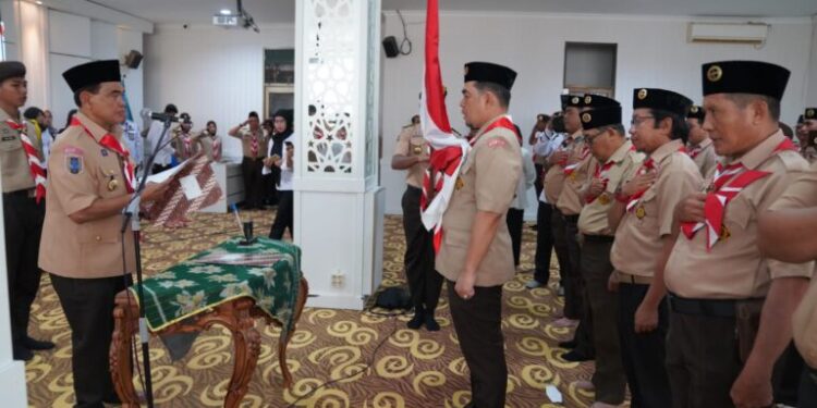 Pelantikan Ketua Kwarcab Tanbu Eka Saprudin beserta pengurus disaksikan langsung Wakil Ketua Orgakum Gerakan Pramuka Kalimantan Selatan, Muhammad Rusli.