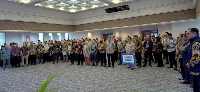 Bantuan dari Insan BRILian Region 9 Bandung diserahkan secara simbolis oleh Nurhadi, Regional Business Support Head BRI Region 9 Bandung, kepada perwakilan BRI Region Medan dan BRI Region Padang.
