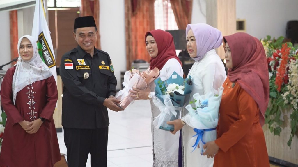 Pada peringatan tersebut, Bupati Tanah Bumbu Zairullah Azhar menyerahkan buket bunga kepada tiga perempuan inspiratif.