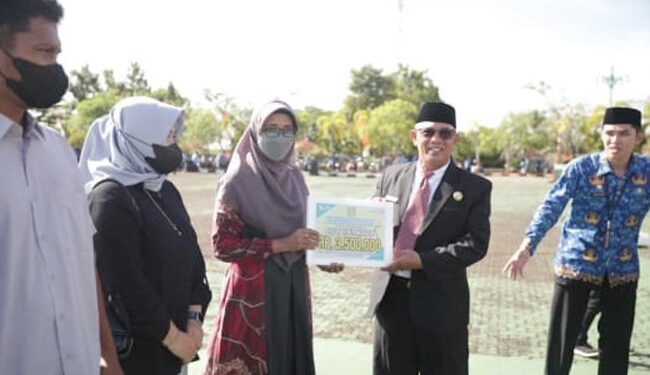TANAH BUMBU, — Wakil Bupati Tanah Bumbu (Wabup Tanbu) Muhammad Rusli menyerahkan penghargaan bagi Pelaku Seni Budaya di Tanah Bumbu, bertempat di Halaman Kantor Bupati Tanbu, Kamis (10/11/2022).