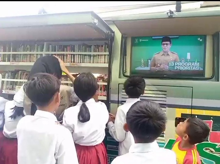 Namun kali ini, kata Teguh, mobil perpustakaan keliling dilengkapi layar monitor atau televisi.
