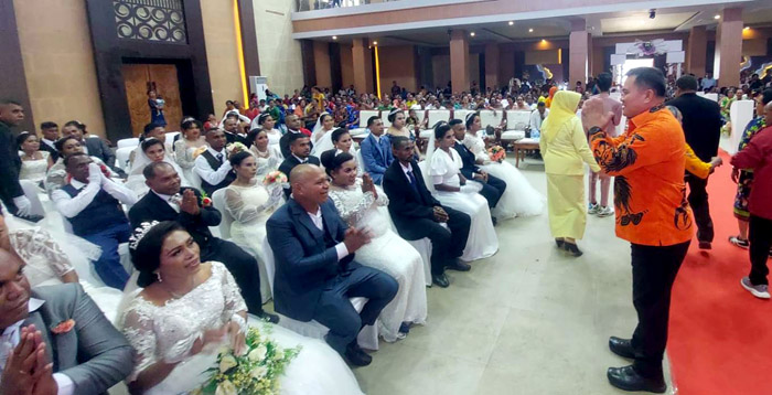 Pernikahan massal kali ini diikuti 50 pasangan OAP yang akhirnya dapat meresmikan hubungan mereka secara hukum.