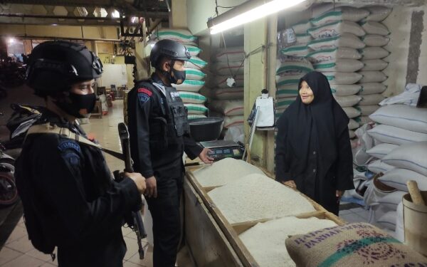 Cianjur – Untuk mengecek ketersediaan Bahan Pangan baik di pasar maupun pertokoan di Wilayah Hukum Polsek Pacet Anggota Brimob Kompi 4 Batalyon B Pelopor Dpp Briptu Briyan Albar bersama 2 personil lain nya melaksanakan patroli dan dialogis dengan pedagang Pertokoan dan masyarakat yang sedang berbelanja dipasar tradisional Cipanas. Jum’at (02/09/2022).