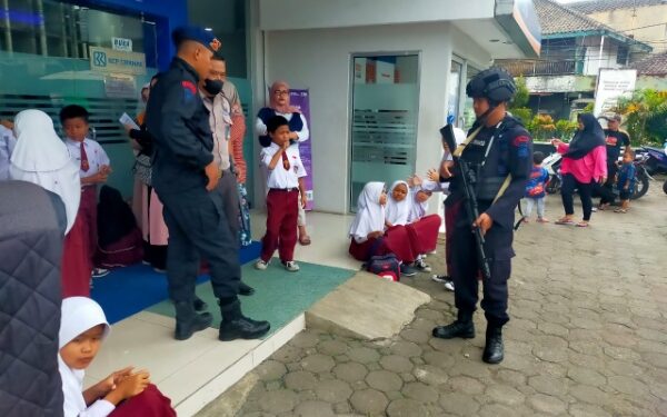UCianjur – Anggota Patroli Brimob Kompi 4 Batalyon B Pelopor di Pimpin oleh Brigadir Randi Ade bersama dua orang nya melaksanakan patroli di perbankan Wilayah Cipanas untuk menyampaikan himbauan Protokol Kesehatan pada masa pandemi Covid-19 ini dan pesan kamtibmas sebagai upaya pemeliharaan kamtibmas yang aman dan kondusif di wilayah hukum Polsek Pacet, Rabu (08/02/2023).