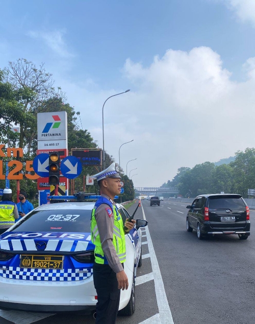 Pemantauan arus laulintas intens dilaksanakan anggota Sat Lantas Polres Cimahi di Jalan tol cipularang arah Jakarta.