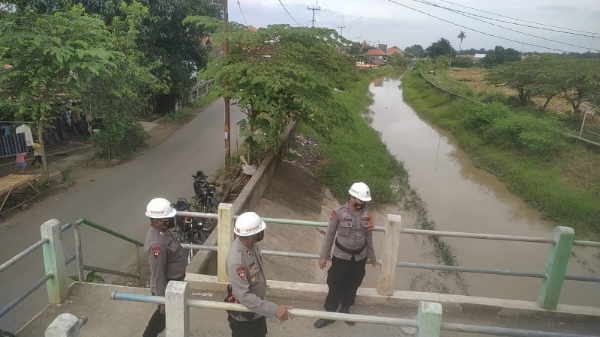 Cirebon,-Anggota Kompi 4 Batalyon C Pelopor Satbrimob Polda Jabar Dpp Aipda Dayat Sudrajat melaksanakan giat pengecekan debit air di pintu air desa Winong kecamatan Gempol Kabupaten Cirebon antisipasi Banjir di wilayah Desa Winong.