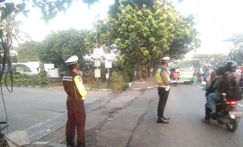 Personil Polsek Rancasari Polrestabes Bandung Melaksanakan Pengaturan Lalu lintas